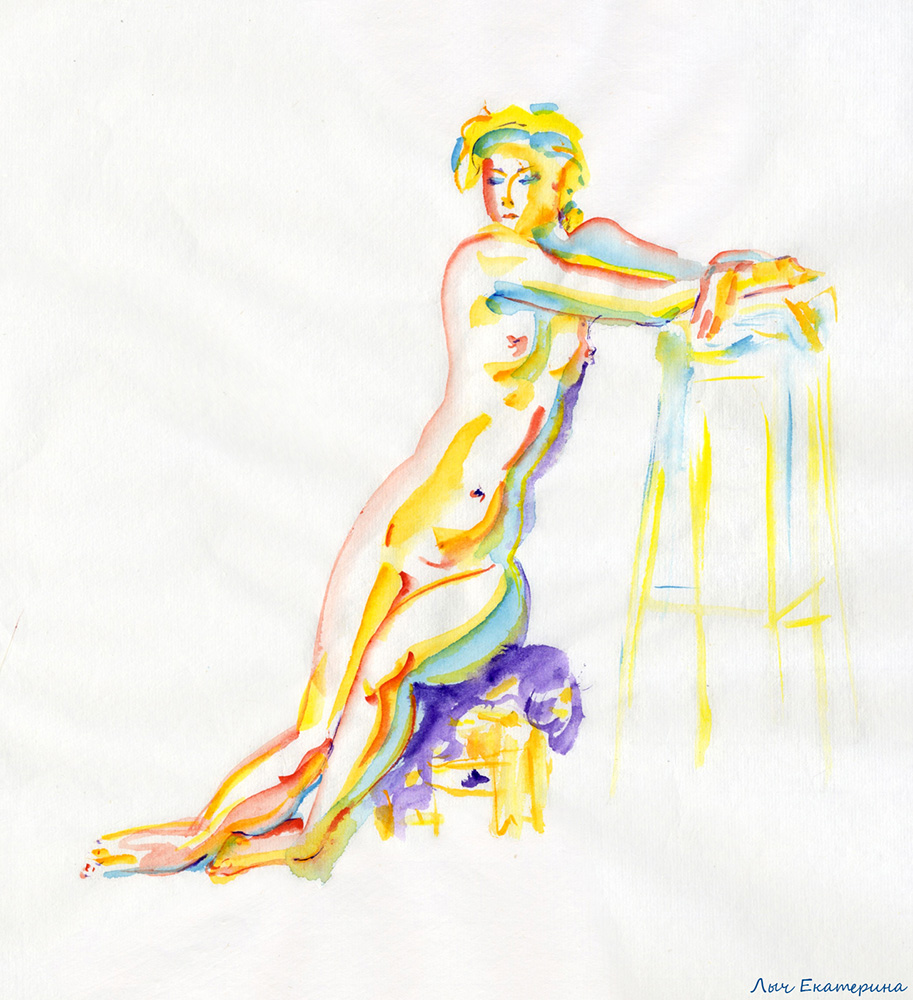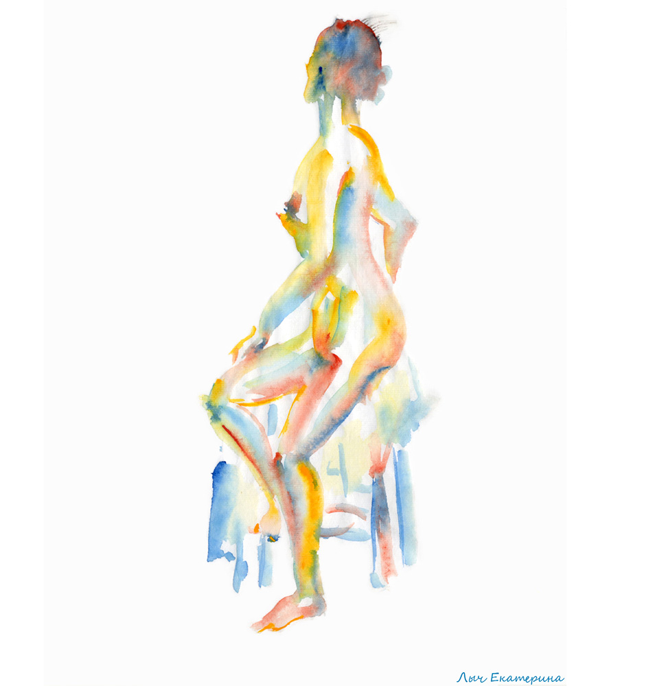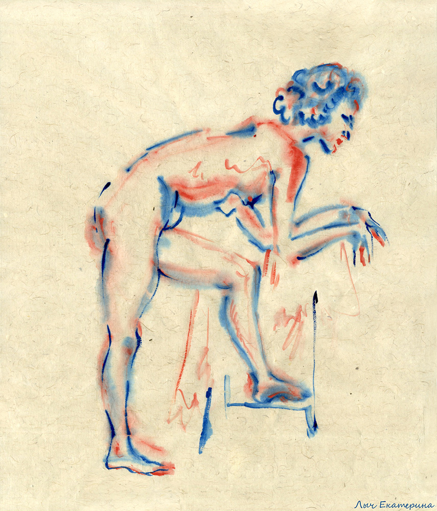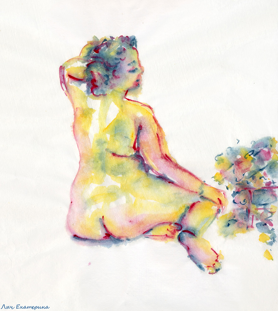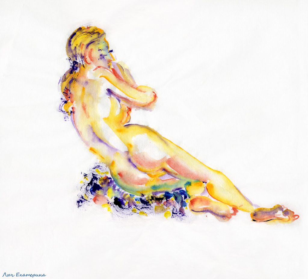 Zenski akt u studiju, deset do dvadesetpet minuta poza, slikano kineskim elemetnima( kineskim mineralnim bojama na papiru od rize).