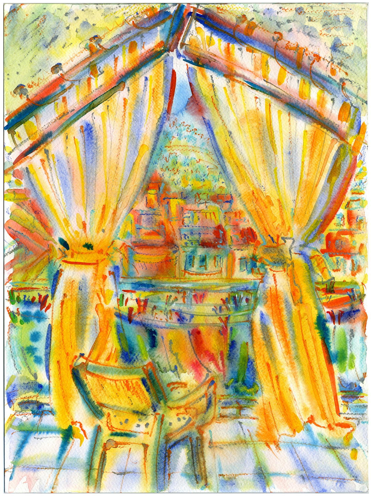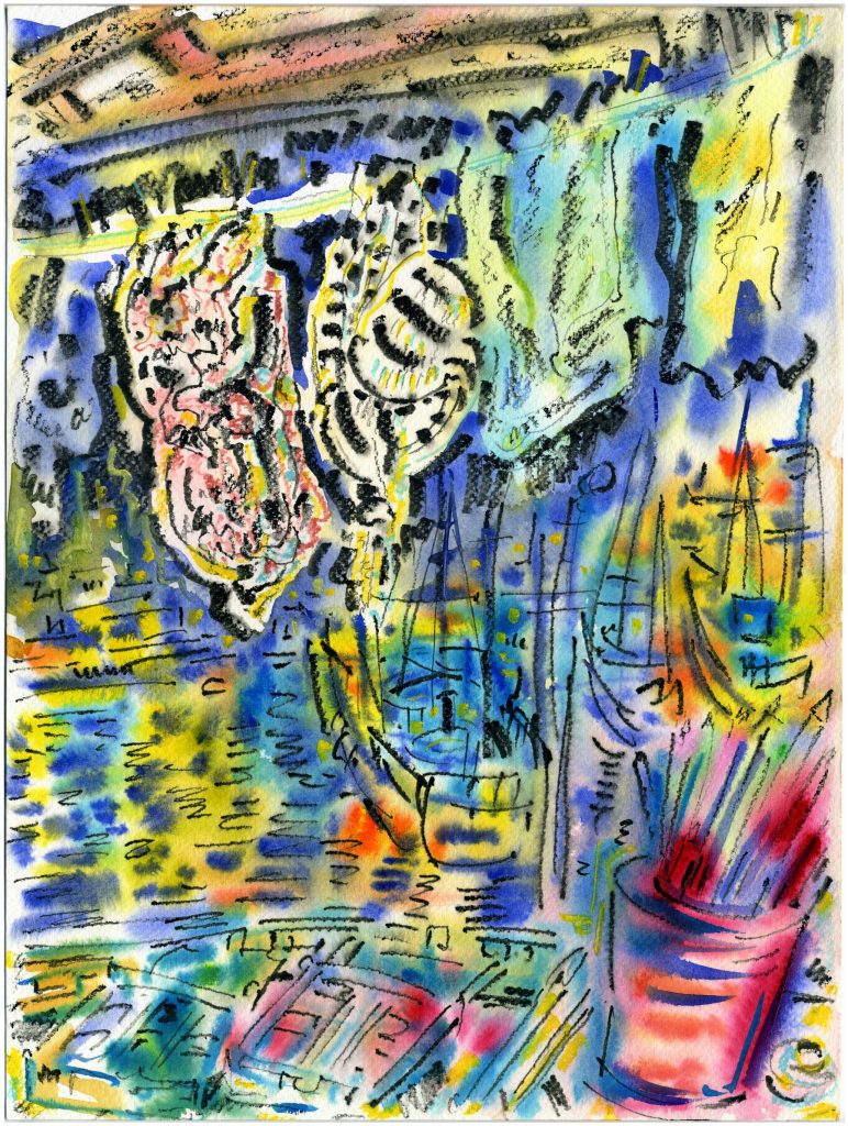 Izložba „Prozor u dvorište" donosi seriju od tridesetak akvarelnih radova kroz koje umjetnik istražuje svakodnevnicu i njene nijanse, posmatrane iz intimne perspektive vlastitog doma.